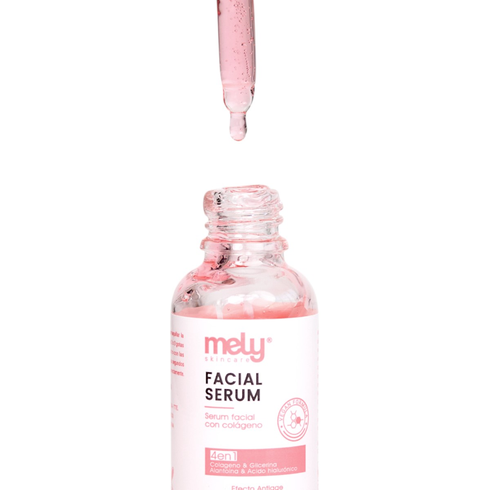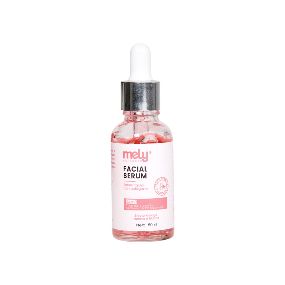 📝 Descripción: ElSérum Facial 4 en 1 de MELY, con Colágeno, Glicerina, Ácido Hialurónico y Alantoína, es un tratamiento avanzado diseñado para combatir los signos del envejecimiento y mejorar la salud de la piel.
