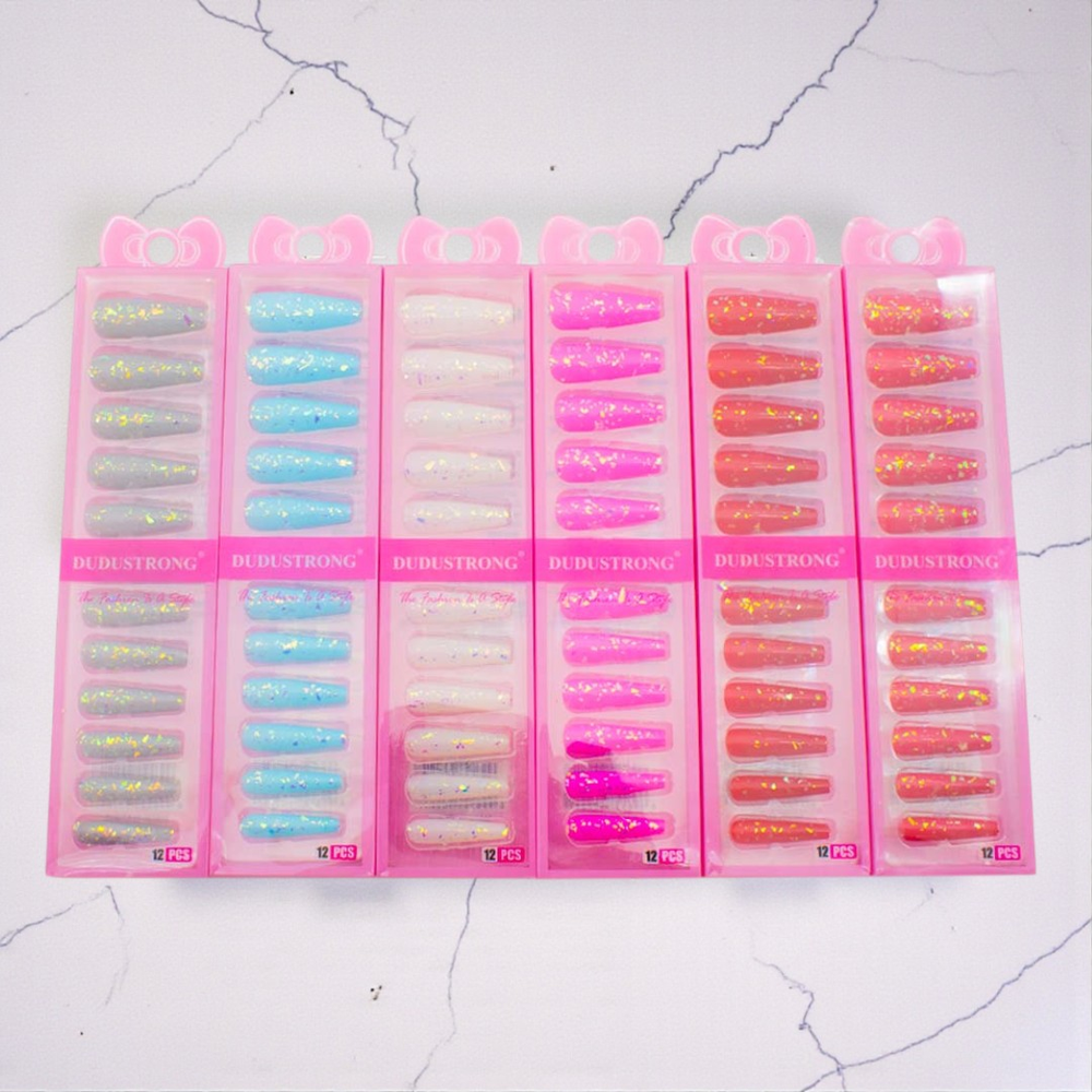 UÑAS POSTIZAS DECORADAS CON GLITTER X12U FORMA COFFIN
