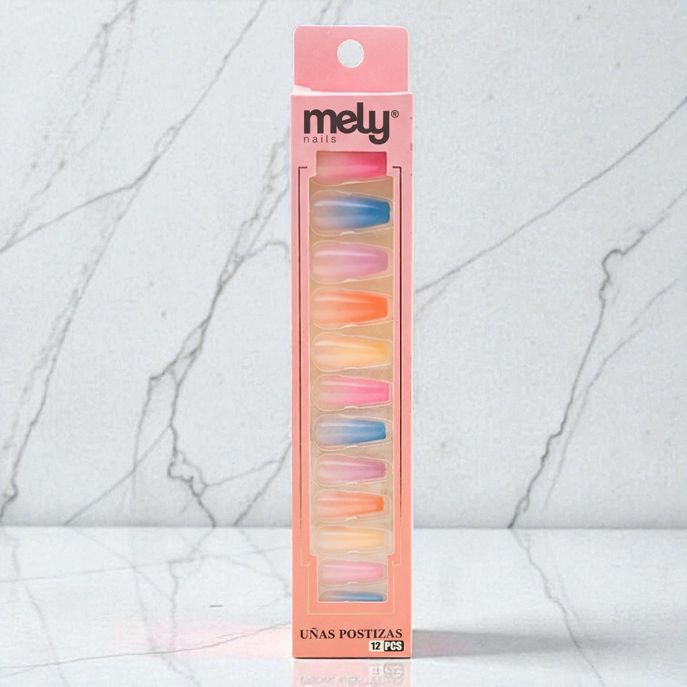 UÑAS POSTIZAS DECORADAS DEGRADE PASTEL COFFIN MELY