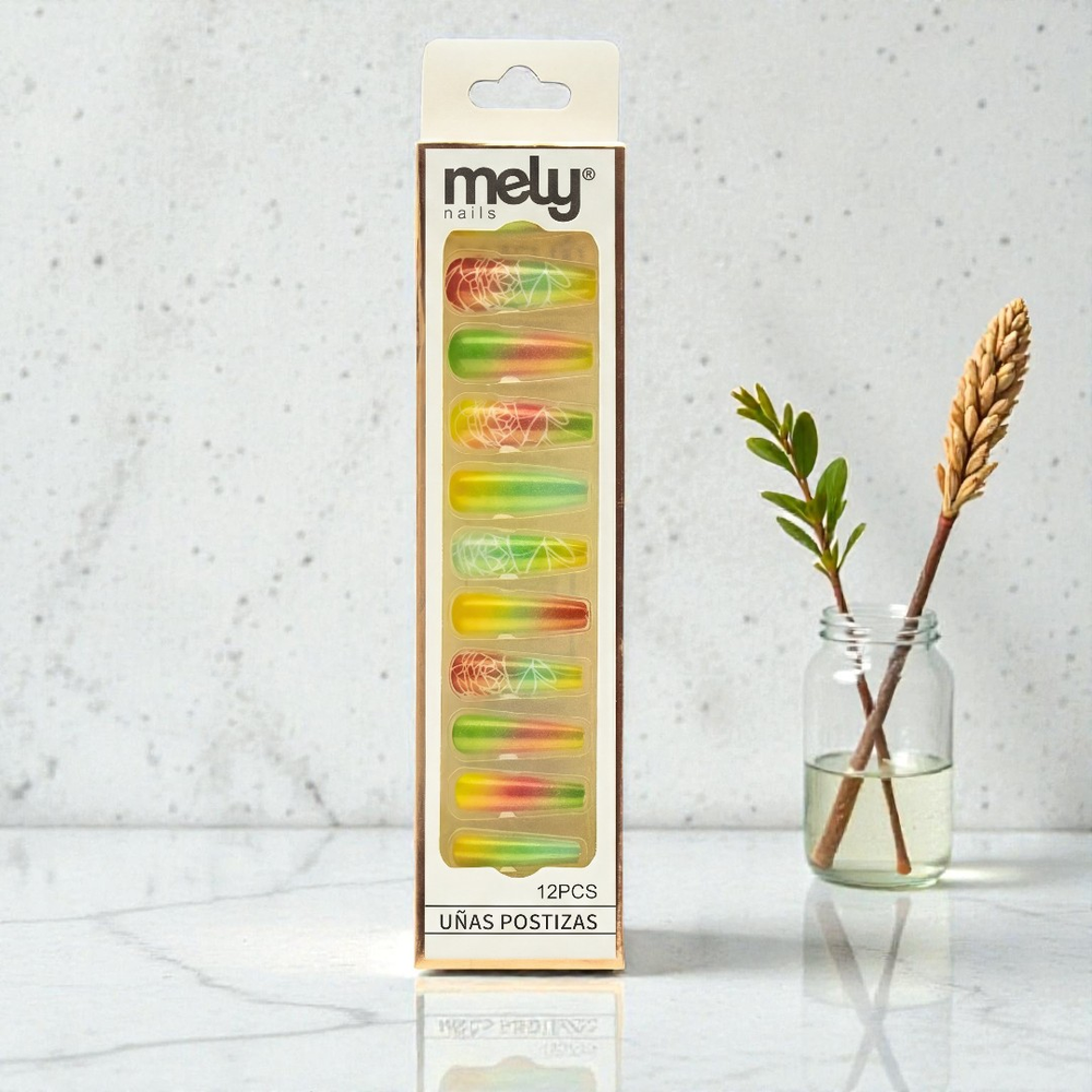 UÑAS POSTIZAS DECORADAS DEGRADE X12U FORMA COFFIN MELY