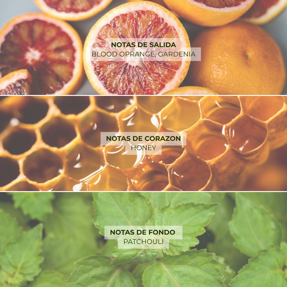 fragancia enigmática y profundamente atractiva. Se abre con la jugosidad de la ciruela y un toque cítrico, evolucionando hacia un corazón sorprendentemente cálido de miel y avellana, envuelto en la opulencia del jazmín. Su fondo de pachulí y vetiver le otorga un carácter amaderado y magnético. Para la persona cuya presencia cautiva sin necesidad de palabras.