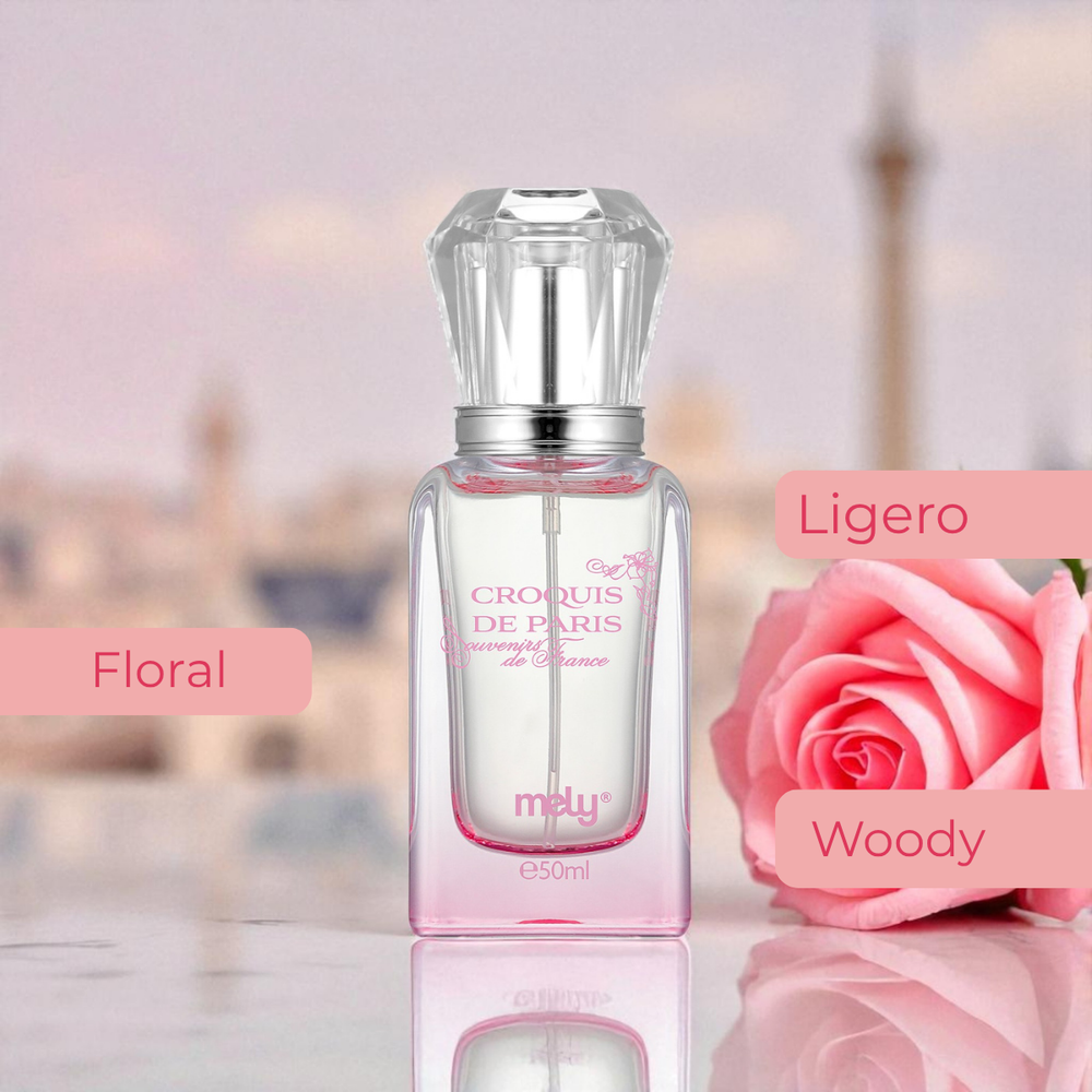 Croquis de Paris captura el espíritu bohemio y chic de la capital francesa. Una apertura efervescente que recuerda a un café en la acera, seguida de un corazón floral empolvado de iris y violeta, como el rastro de un pañuelo de seda. Su fondo amaderado y almizclado evoca las antiguas librerías del Barrio Latino. Para la musa moderna que encuentra poesía en lo cotidiano.