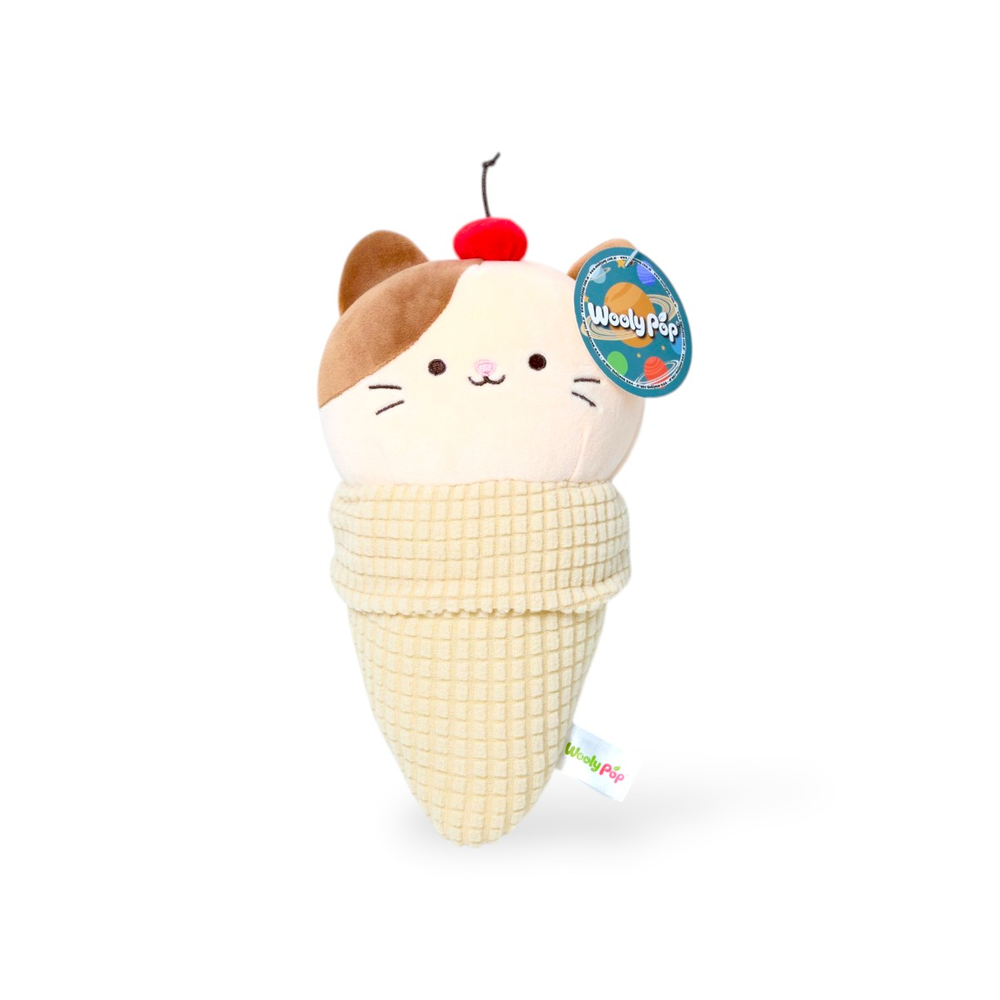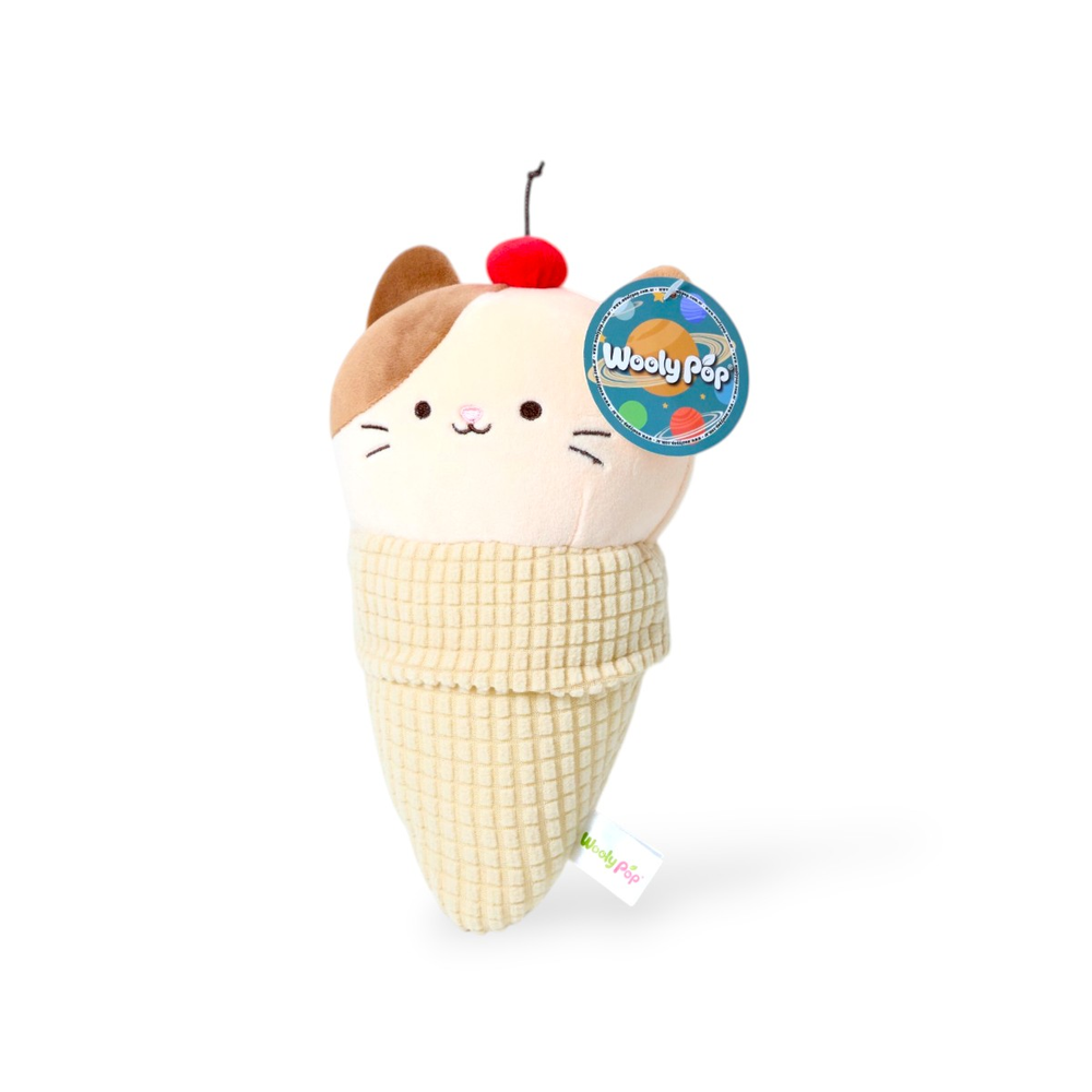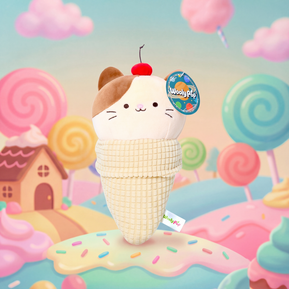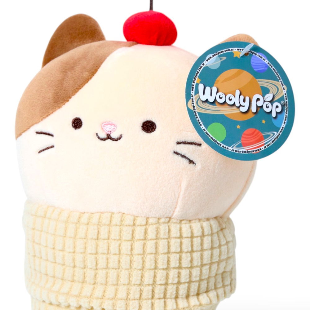Desde Candy Valley llega Cherry-Purr, un peluche en forma de heladito con un gatito gordito y adorable apoyado en el cucurucho. Tiene carita bordada, textura súper suave y una cerecita roja que le da el toque más dulce. Perfecto para decorar tu cama o tu escritorio y sumar un “ay, qué lindo” instantáneo.