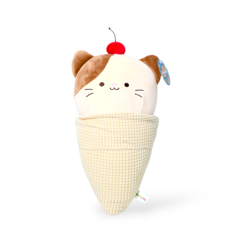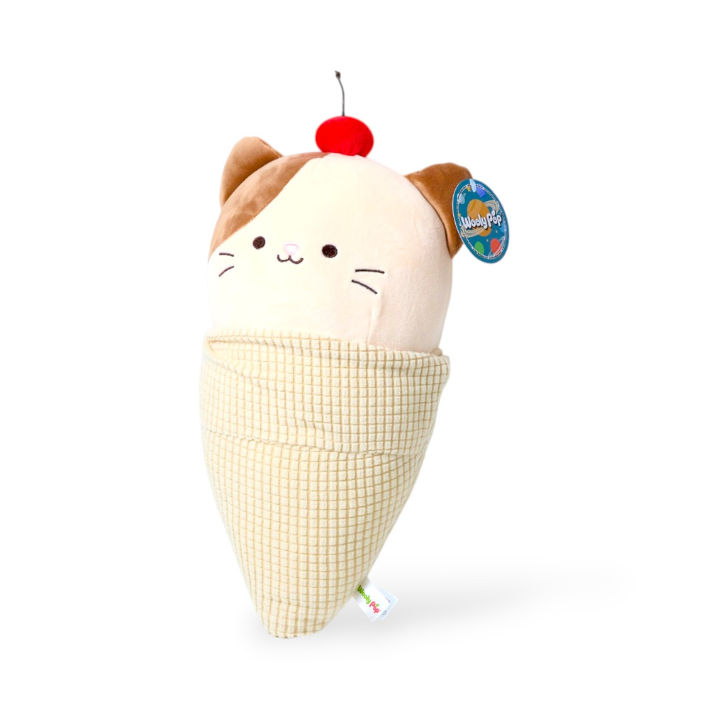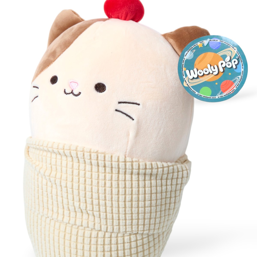En Candy Valley, Frosty es la versión más “nube” del heladito-michi: todo blanquito, suavecito y con carita bordada que te roba una sonrisa. Viene en su cucurucho abrazable, perfecto para decorar tu cama o acompañarte en el sillón mientras descansás. Un peluche simple, tierno y recontra combinable con cualquier rincón pastel.