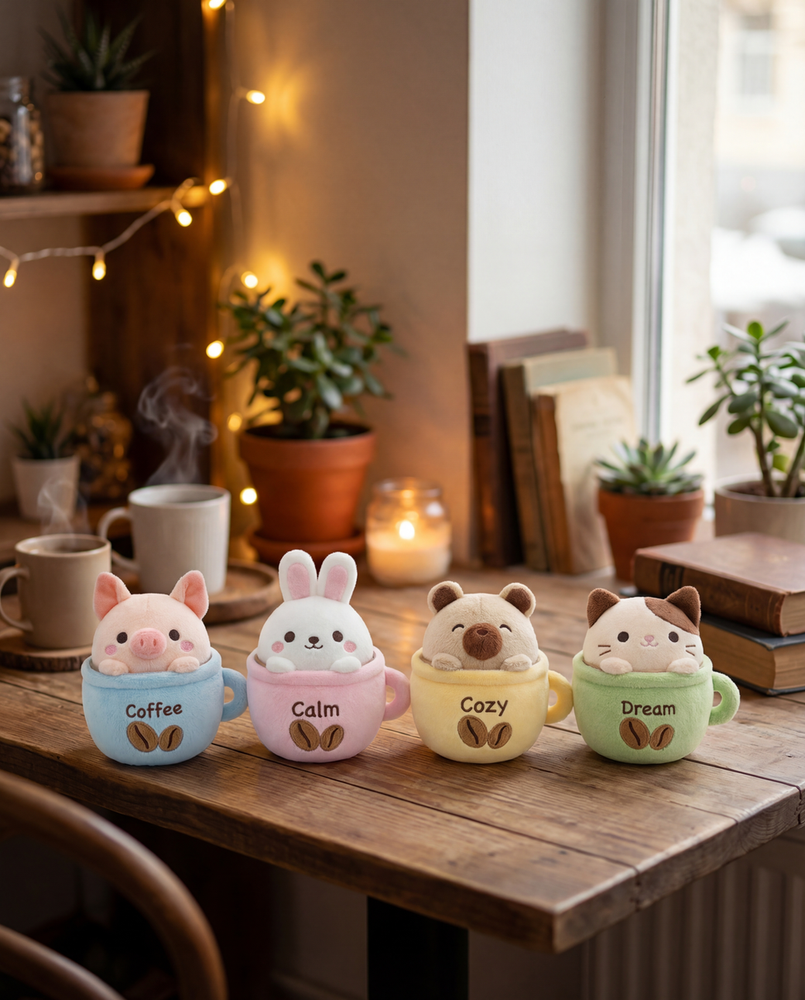 En Mystic Mug Refuge las tazas no solo guardan café… guardan moods. Ahí viven The Cuppys, cuatro mini-compas que aparecen justo cuando el día pide una pausa: un sorbito, una manta, una velita y todo vuelve a estar bien.