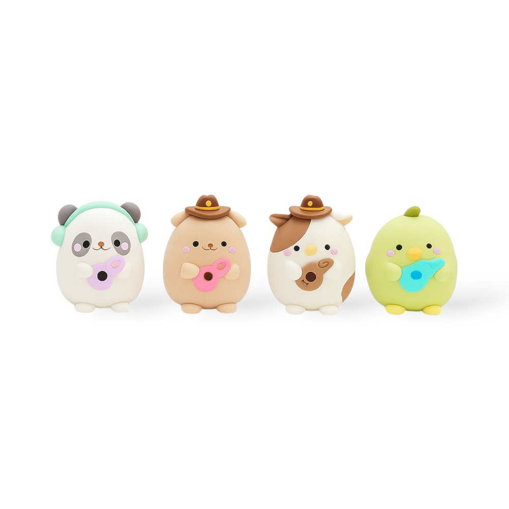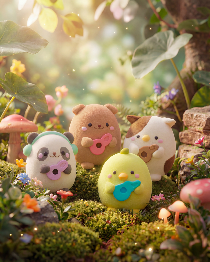 En Garden of the Goblins, cuando el musgo se enciende con chispitas doradas y los honguitos se acomodan como público, aparecen The Goblin Groovers: una mini bandita del jardín que toca melodías suaves para alegrar a duendes, flores y bichitos curiosos. Pandi-Loop marca los acordes tranquilos, Bumbi-Strum lleva el ritmo más cálido, Mishi-Chord le pone el toque pícaro y Pío-Tune, el más chiquito, ilumina cada canción con su vibra feliz. \n\nDicen que cuando los cuatro se juntan, el bosque se queda escuchando en silencio y hasta las hojitas se mueven al compás. Son ideales para decorar, coleccionar o regalar un pedacito de jardín encantado con mucha ternura, música y magia. 🎶🍄🌿✨