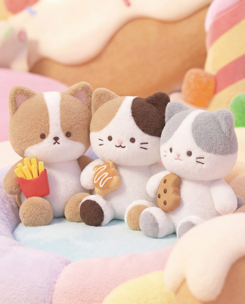 Los Michis son tres gatitos peluche con caritas tiernas y colores pastel, listos para acompañarte en tu día (o en tu siesta). Cada uno trae su snack favorito: una galletita, un pancito dulce y hasta papitas, porque en Candy Valley todo es más divertido. Son suaves, abrazables y quedan hermosos para decorar tu cama, sillón o escritorio.