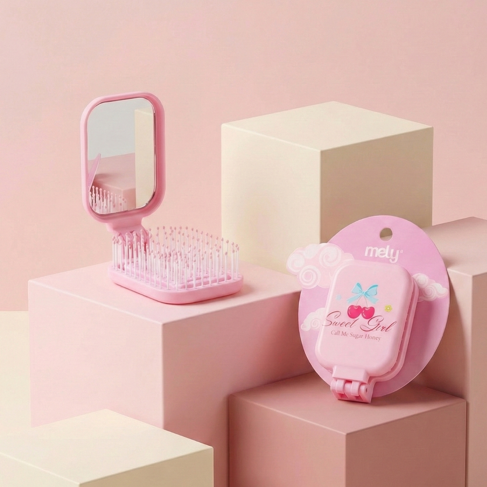 ✨ Llevá la frescura de las cerezas a tu rutina diaria con el Cepillo con Espejo de Mely, el accesorio compacto que redefine la practicidad con un toque de lujo visual. Este cepillo ha sido desarrollado con un sistema de cerdas de punta redondeada que masajean el cuero cabelludo y desenredan la fibra capilar sin tirones ni quiebres. Su diseño plegable esconde un espejo de alta definición, permitiéndote chequear tu maquillaje y peinado en segundos sin necesidad de cargar accesorios extra. Fabricado con materiales de alta resistencia y un acabado suave al tacto, su tamaño es ideal para carteras pequeñas, mochilas o el neceser de viaje. Es un artículo de alta rotación para el mercado mayorista, preferido por quienes buscan funcionalidad técnica y un diseño adorable que nunca pasa de moda. ✨