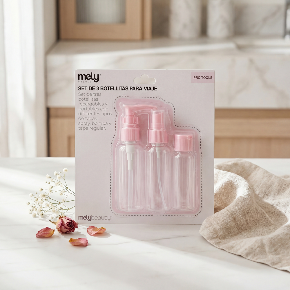 A diferencia de los envases genéricos, el set de Mely utiliza plásticos libres de BPA que no alteran el pH de tus productos. Es la herramienta táctica ideal para profesionales que necesitan llevar su kit a locaciones externas o para viajeros que buscan cumplir con las normas TSA sin sacrificar ni un paso de su rutina de belleza. ✨