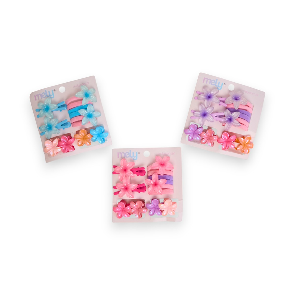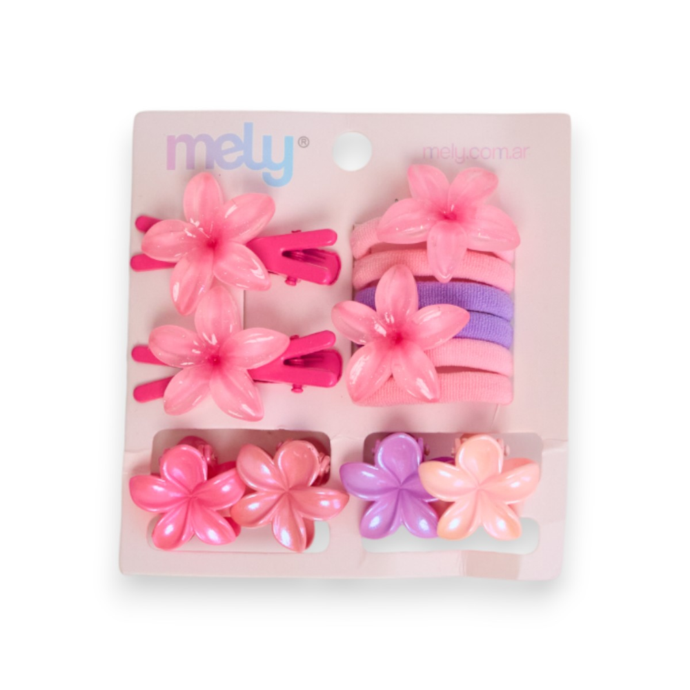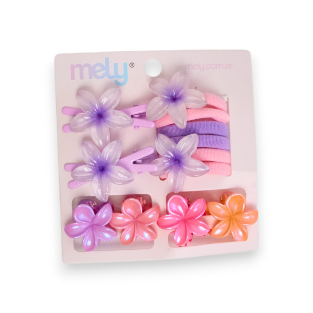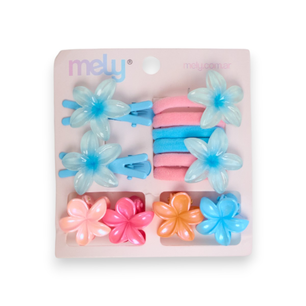 SET DE BROCHE /COLITA PELO CON FLORES MELY