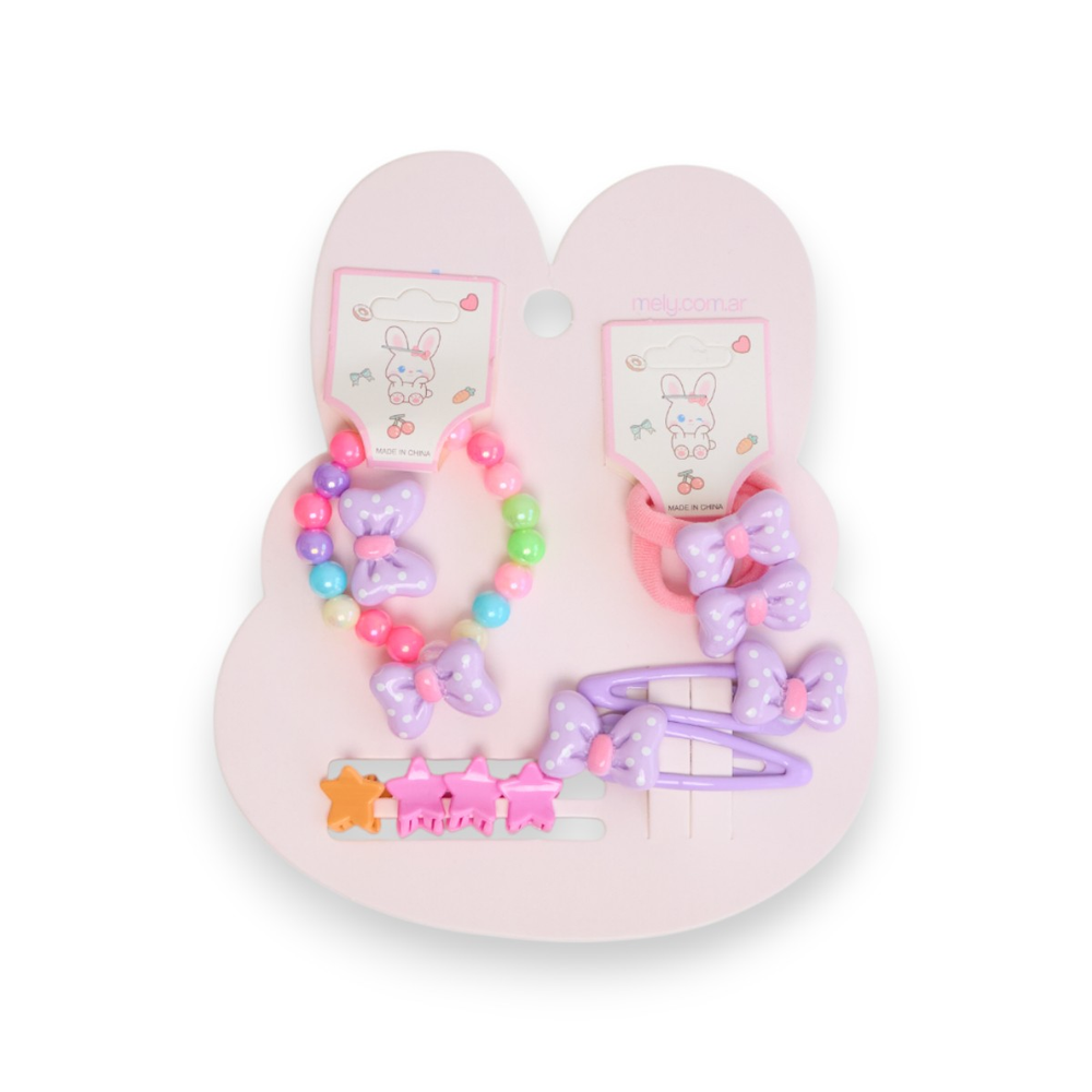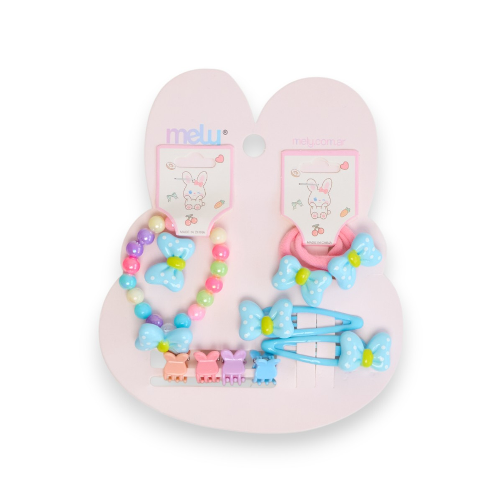 SET DE BROCHE/ CLIP/ COLITA PELO PARA NIÑA MELY