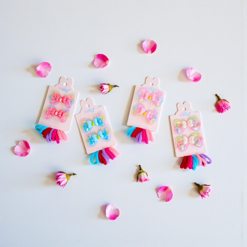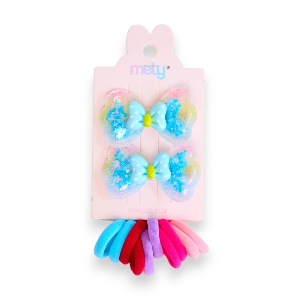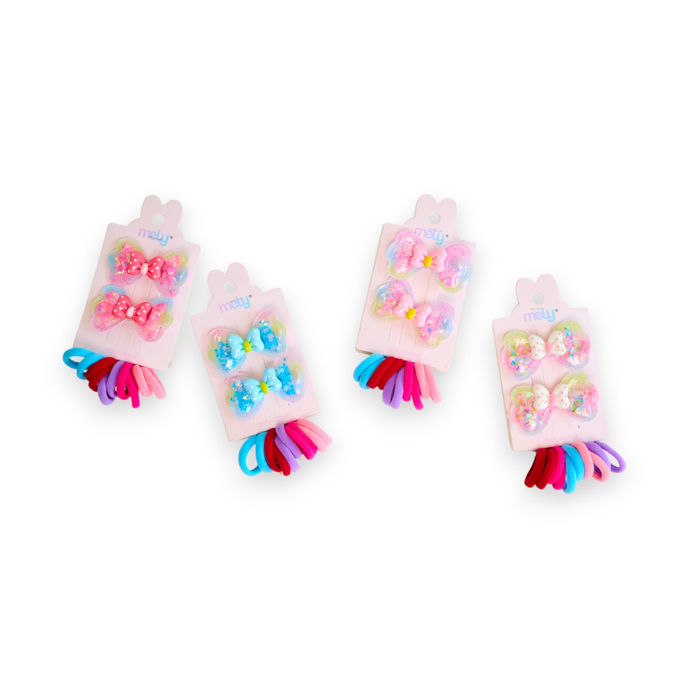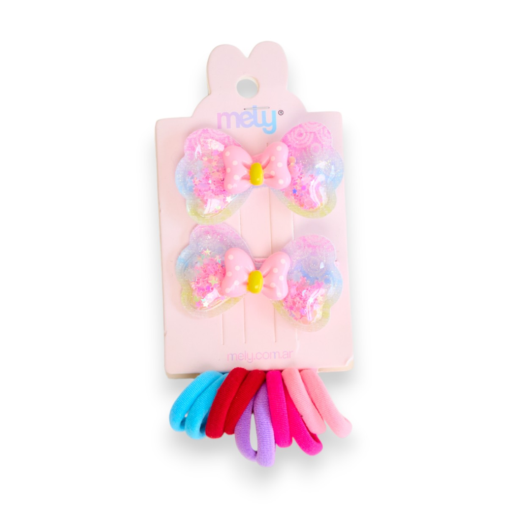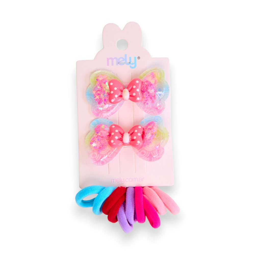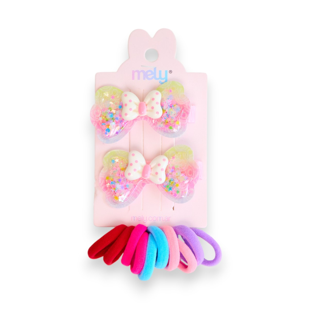 SET DE CLIP / COLITA PELO CON MOÑO PARA NIÑA MELY