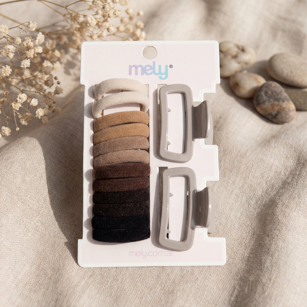 ✨ Maximizá las posibilidades de tu look con el Set Multi-Accesorios de Mely. Este kit ha sido curado para cubrir todas las necesidades de sujeción: las colitas de algodón y elastano aseguran una coleta firme sin cortar la fibra capilar; el broche (claw clip) cuenta con un resorte de alta tensión ideal para recogidos rápidos; y las hebillas ofrecen el acabado de molienda fina necesario para sujetar laterales con suavidad. Fabricado con materiales de alta gama, cada componente del set está diseñado para resistir el uso intensivo sin perder su forma ni dañar el cabello. Es el aliado táctico para mantener el cabello alejado del rostro durante el skincare o para crear peinados estructurados con acabado de salón. ✨