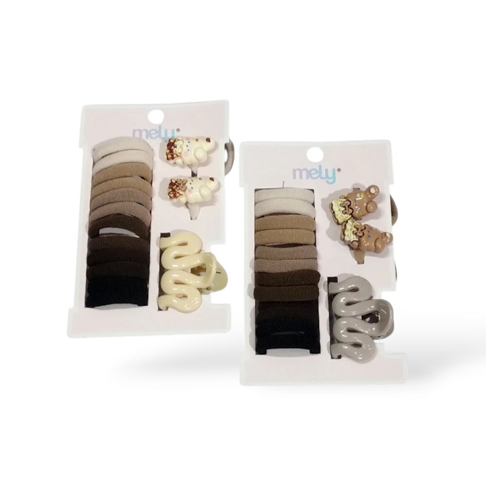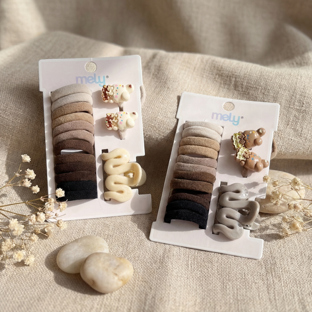✨ Maximizá las posibilidades de tu look con el Set Multi-Accesorios de Mely. Este kit ha sido curado para cubrir todas las necesidades de sujeción: las colitas de algodón y elastano aseguran una coleta firme sin cortar la fibra capilar; el broche (claw clip) cuenta con un resorte de alta tensión ideal para recogidos rápidos; y las hebillas ofrecen el acabado de molienda fina necesario para sujetar laterales con suavidad. Fabricado con materiales de alta gama, cada componente del set está diseñado para resistir el uso intensivo sin perder su forma ni dañar el cabello. Es el aliado táctico para mantener el cabello alejado del rostro durante el skincare o para crear peinados estructurados con acabado de salón. ✨