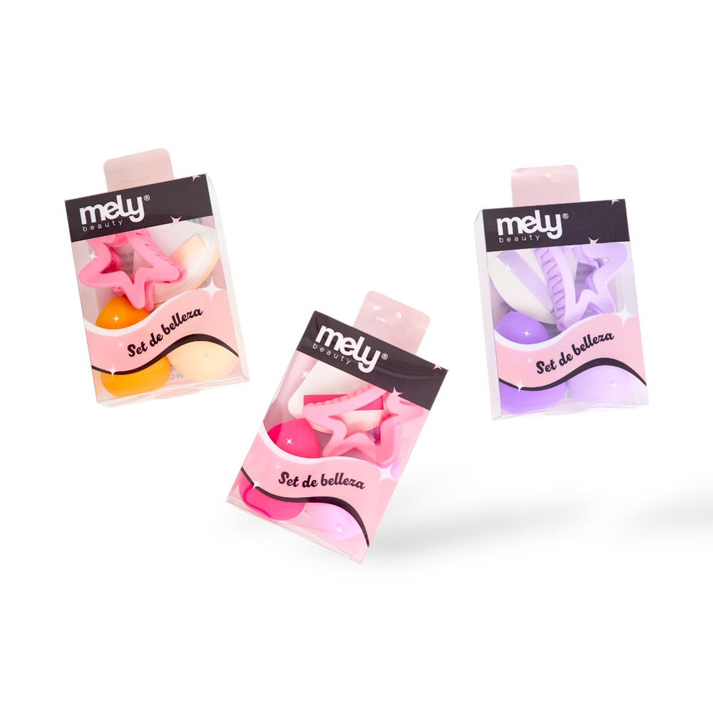 SET DE ESPONJAS MAQUILLAJE CON BROCHE DE PELO MELY