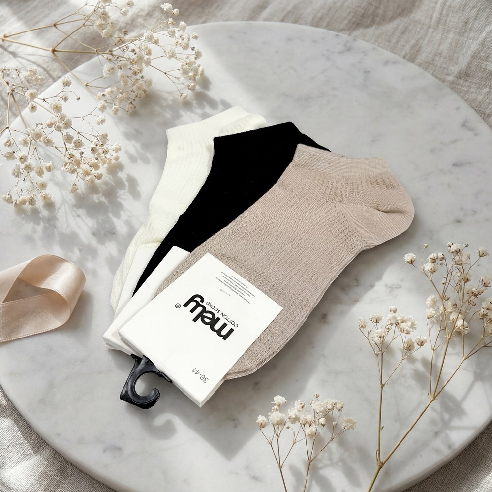 ✨ Elevá tu experiencia de bienestar diario con las Medias Mely. Confeccionadas con fibras de algodón seleccionadas, estas medias proporcionan una textura soft touch que protege la piel y permite una ventilación óptima del pie.
