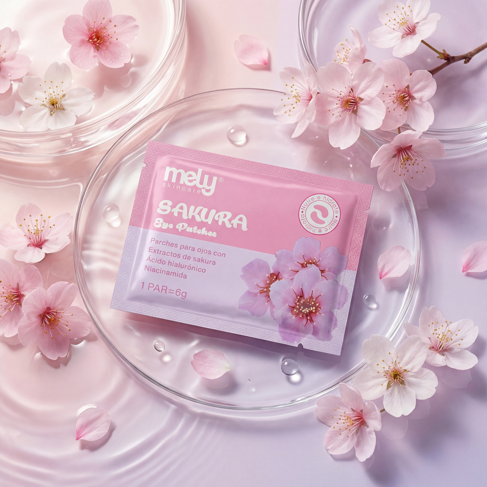 Dale a tu contorno de ojos el descanso que necesita con los Sakura Eye Patches MELY. Estos parches de hidrogel están enriquecidos con extracto de Flor de Cerezo, un ingrediente famoso por sus propiedades antioxidantes e iluminadoras. Son el tratamiento ideal para combatir la mirada cansada, ayudando a aclarar la zona de la ojera y a suavizar las líneas de expresión causadas por la deshidratación. Su textura refrescante descongestiona al instante, dejando la piel más tersa, suave y con una luminosidad rosada natural. Perfectos para usar antes del maquillaje o como tu ritual de relax nocturno.