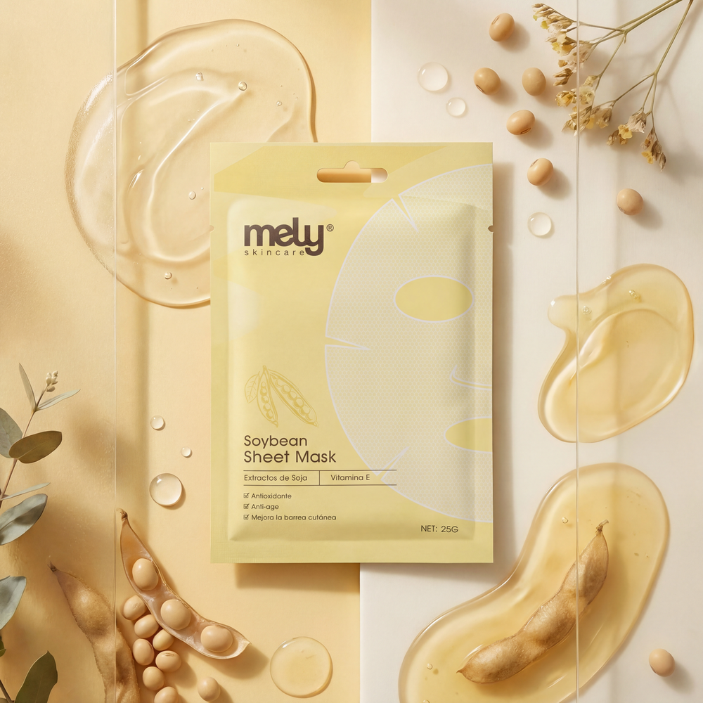 Dale a tu piel un shock de nutrición con la Soybean Sheet Mask MELY. Esta mascarilla de tela está enriquecida con extracto de soja, un ingrediente poderoso conocido por su alto contenido de proteínas y nutrientes esenciales. Es el tratamiento perfecto para pieles que se sienten flácidas, secas o con falta de vitalidad. En solo 15 minutos, ayuda a mejorar la elasticidad, suavizar la textura y brindar una hidratación intensa. El resultado es un rostro que se siente más firme, relleno ("plump") y con un aspecto visiblemente más saludable y energizado.
