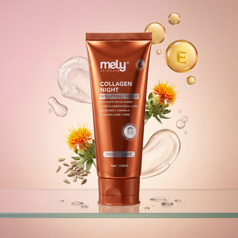 Maximizá tu sueño de belleza con la Collagen Night Wrapping Mask MELY. Esta innovadora mascarilla nocturna actúa como un escudo invisible ("wrapping") sobre tu piel. Su fórmula rica en colágeno se aplica como último paso de tu rutina para sellar toda la hidratación y los activos de tus productos anteriores, evitando que se evaporen durante la noche. Mientras descansás, nutre profundamente y ayuda a mejorar la elasticidad y firmeza. Al despertar, la película se retira o enjuaga, revelando una piel increíblemente "plump", suave, luminosa y sin signos de fatiga.