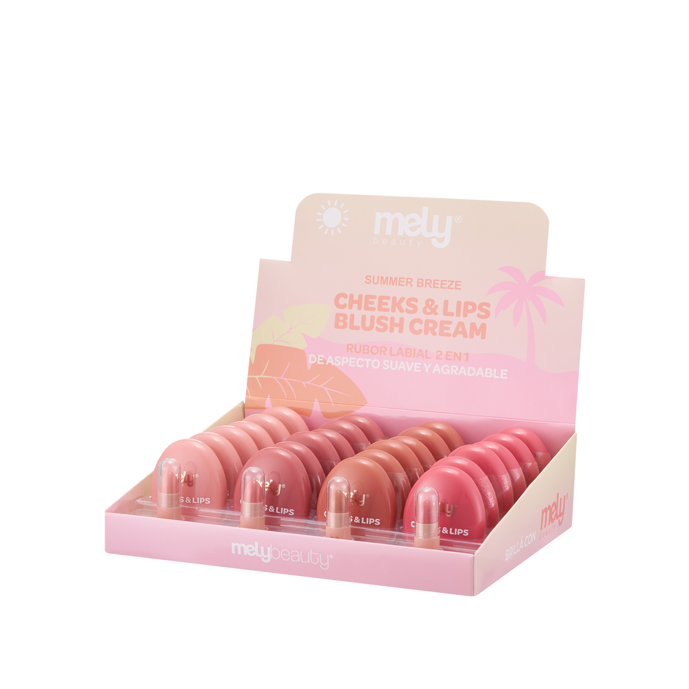 Capturá la esencia de la temporada con el Blush and Lip de la línea Summer Breeze de Mely, el producto multifuncional definitivo para quienes buscan belleza y practicidad en un solo envase. Su fórmula cremosa de alta gama ha sido desarrollada para ofrecer una textura ultra sedosa que se desliza sin esfuerzo, permitiendo una aplicación uniforme tanto en los pómulos como en los labios. Gracias a sus pigmentos micronizados y su acabado "dewy", este producto se funde perfectamente con la piel, aportando un rubor natural y saludable que parece iluminado desde adentro. La colección Summer Breeze se destaca por tonos inspirados en la calidez del sol, ideales para realizar la técnica de "monochromatic makeup" de forma profesional. Es un artículo de alta rotación para el mercado mayorista, perfecto para llevar en el neceser diario y lograr retoques rápidos que transforman el rostro al instante con un efecto de frescura total. ✨