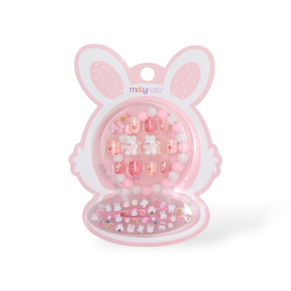 ✨ Sumá diversión y estilo a cada look con el kit de uñas postizas press on de Mely. Incluye diseños delicados en distintos tamaños y una pulserita a juego para completar el look.